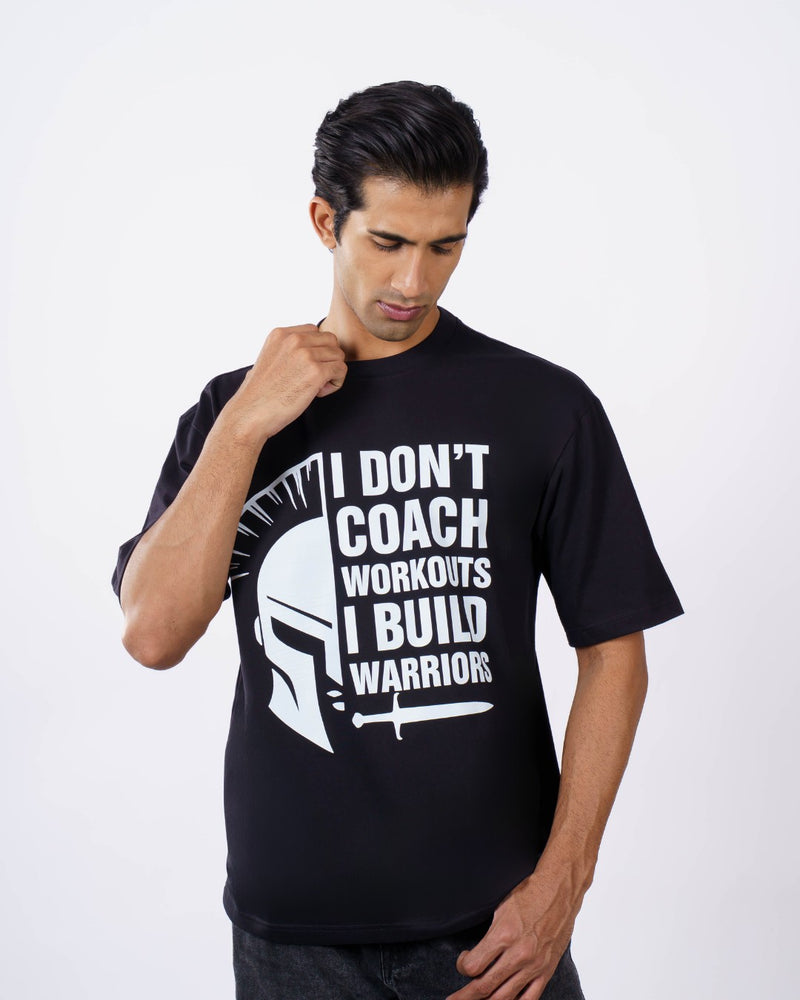 Fitness Trainers | I don’t coach workouts-I build warriors | Oversized fit Tshirt