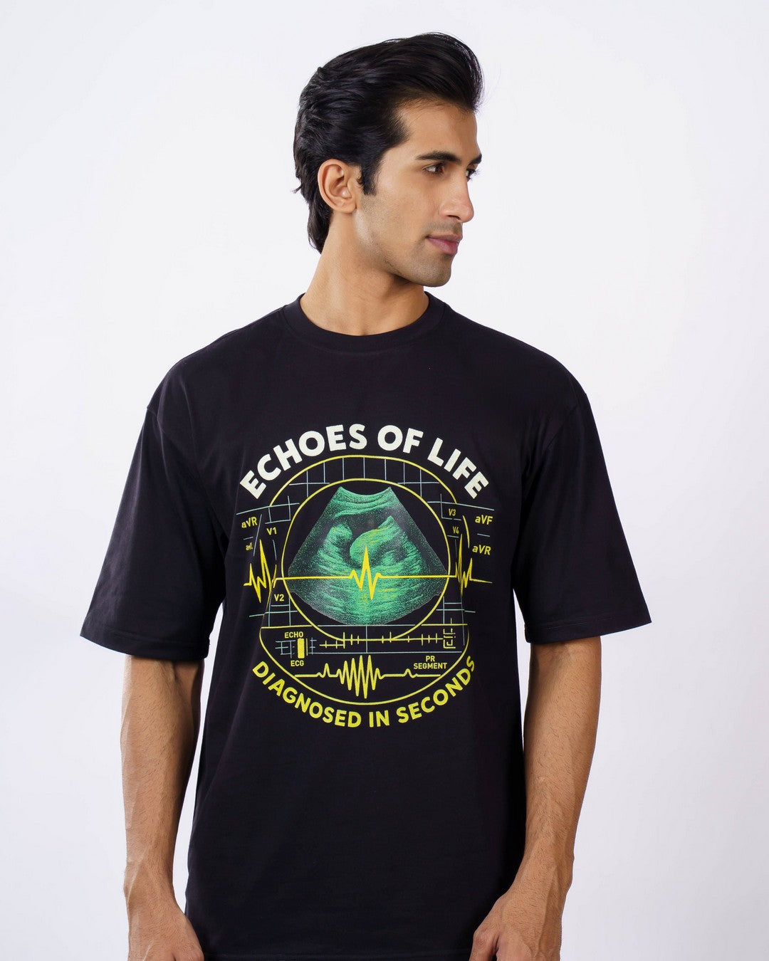 Cardiologist | Echoes Of Life, Diagnosed In Seconds | Oversized Quote Tshirt For Men