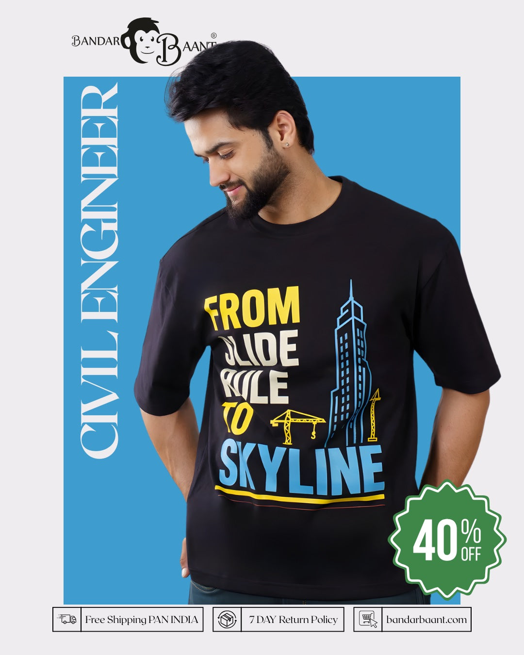 Civil Engineer | From Slide Rule To Skyline | Oversized Quote Tshirt For Men