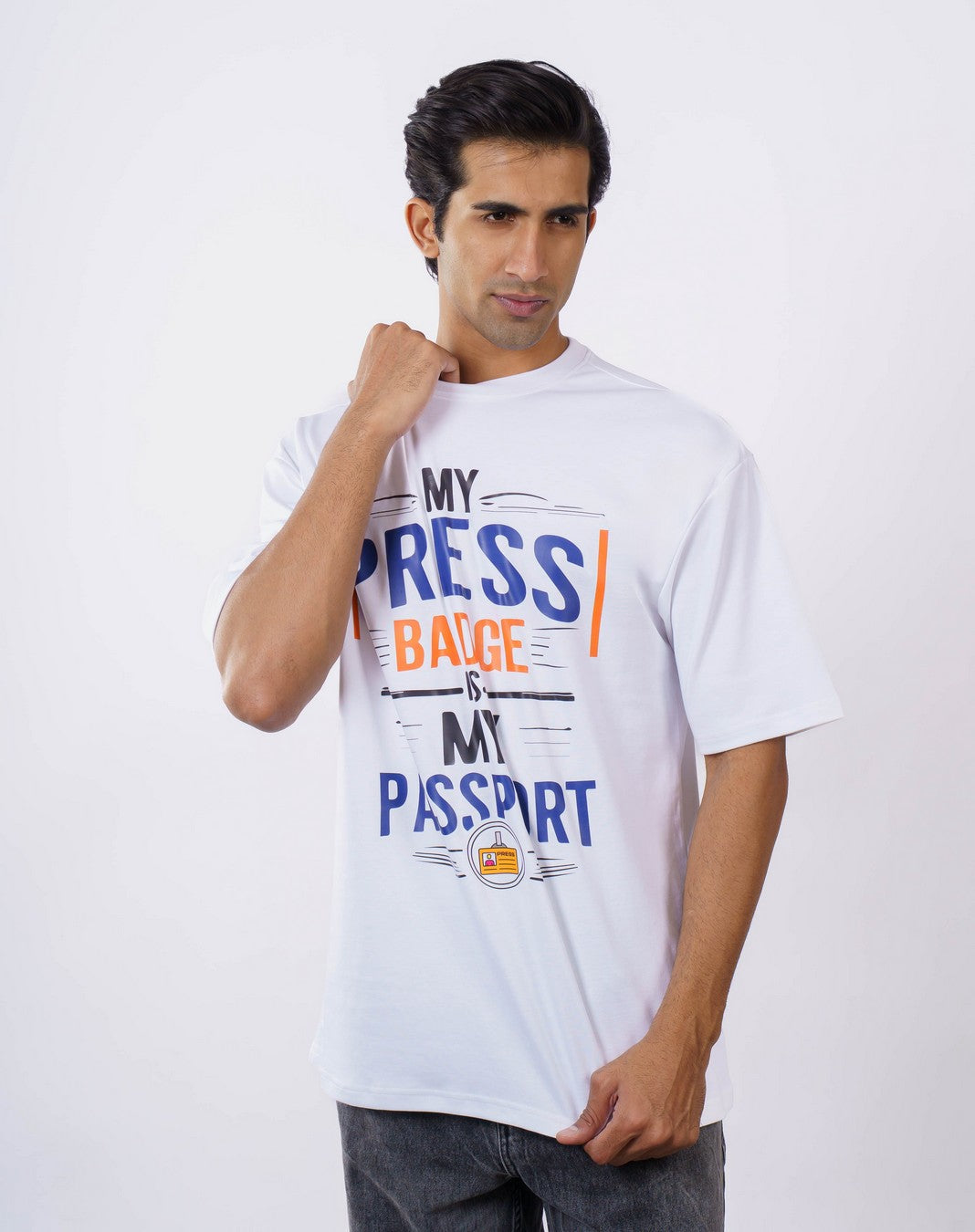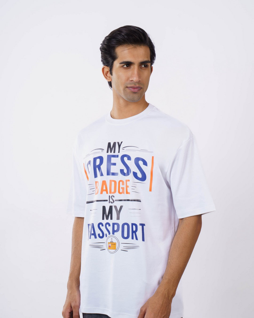 Access granted - to stories that shape the world. This oversized T-shirt For Men is designed for journalists, reporters, and media professionals whose journeys cross borders, cultures, and breaking-news moments. Featuring the bold quote “My Press Badge Is My Passport,” this statement-making tee celebrates the adventurous, truth-seeking spirit of every storyteller.