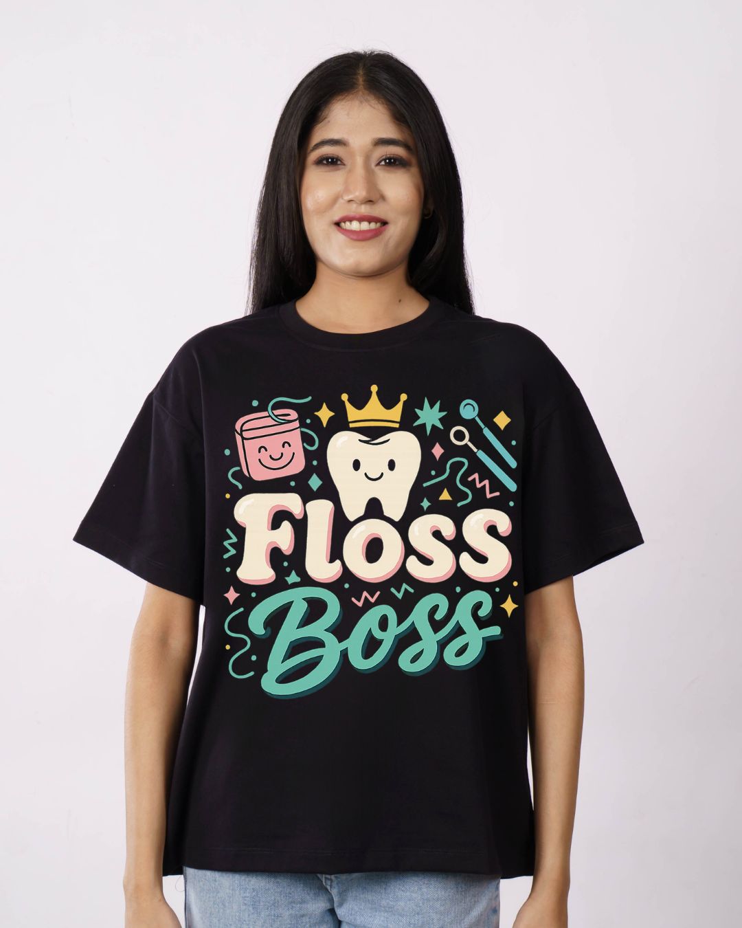 Dentist | Floss Boss | Oversized Printed T-shirt For Women