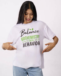 This oversized-fit t-shirt is for nutritionists, dieticians, and wellness experts who understand the harmony of science and human behavior. With the line “I balance biochemistry with behavior”, it’s a witty nod to expertise and insight.