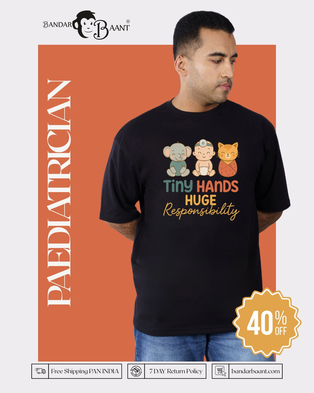 This oversized-fit t-shirt honors pediatricians who carry the weight of little lives with care and compassion. Featuring the line “Tiny Hands. Huge Responsibility,” it’s a thoughtful tribute to those who guide children from their very first steps to healthier tomorrows.