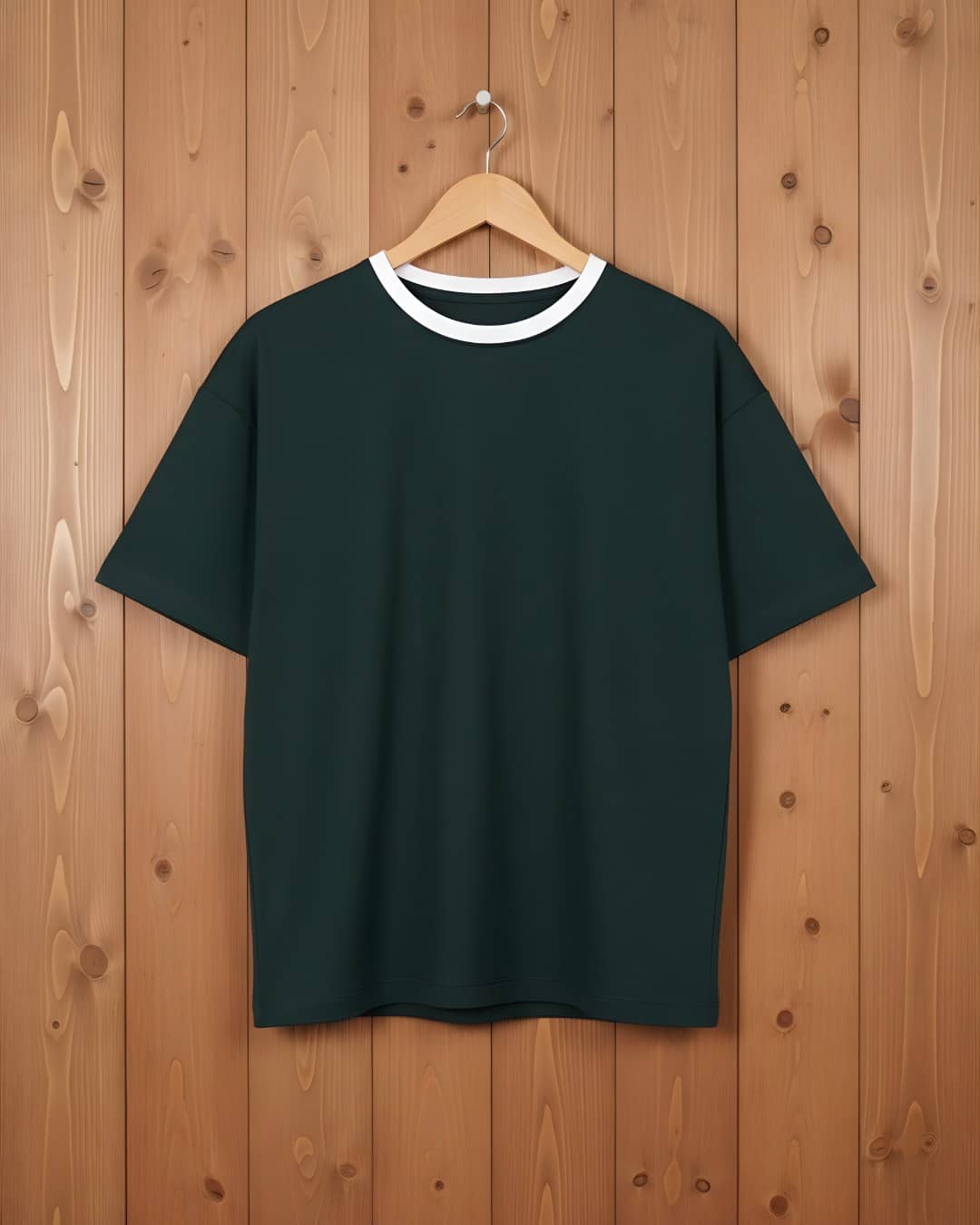 Premium Bottle Green Oversized Plain T-shirt For Women, 240 GSM Fabric