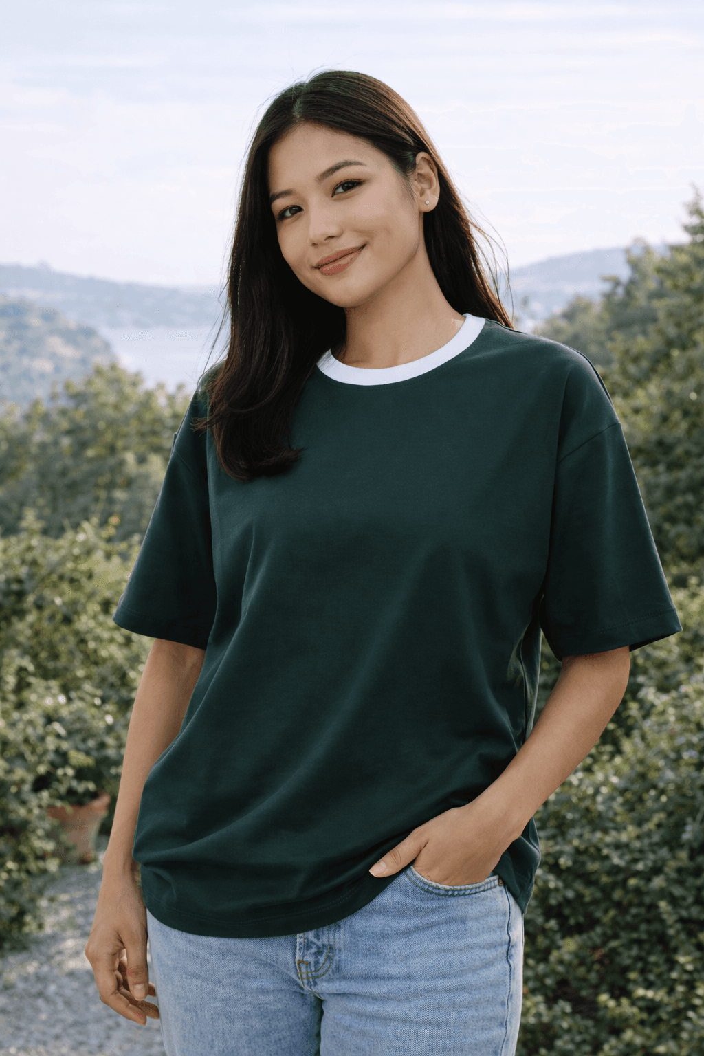 Premium Bottle Green Oversized Plain T-shirt For Women, 240 GSM Fabric - XS / Female