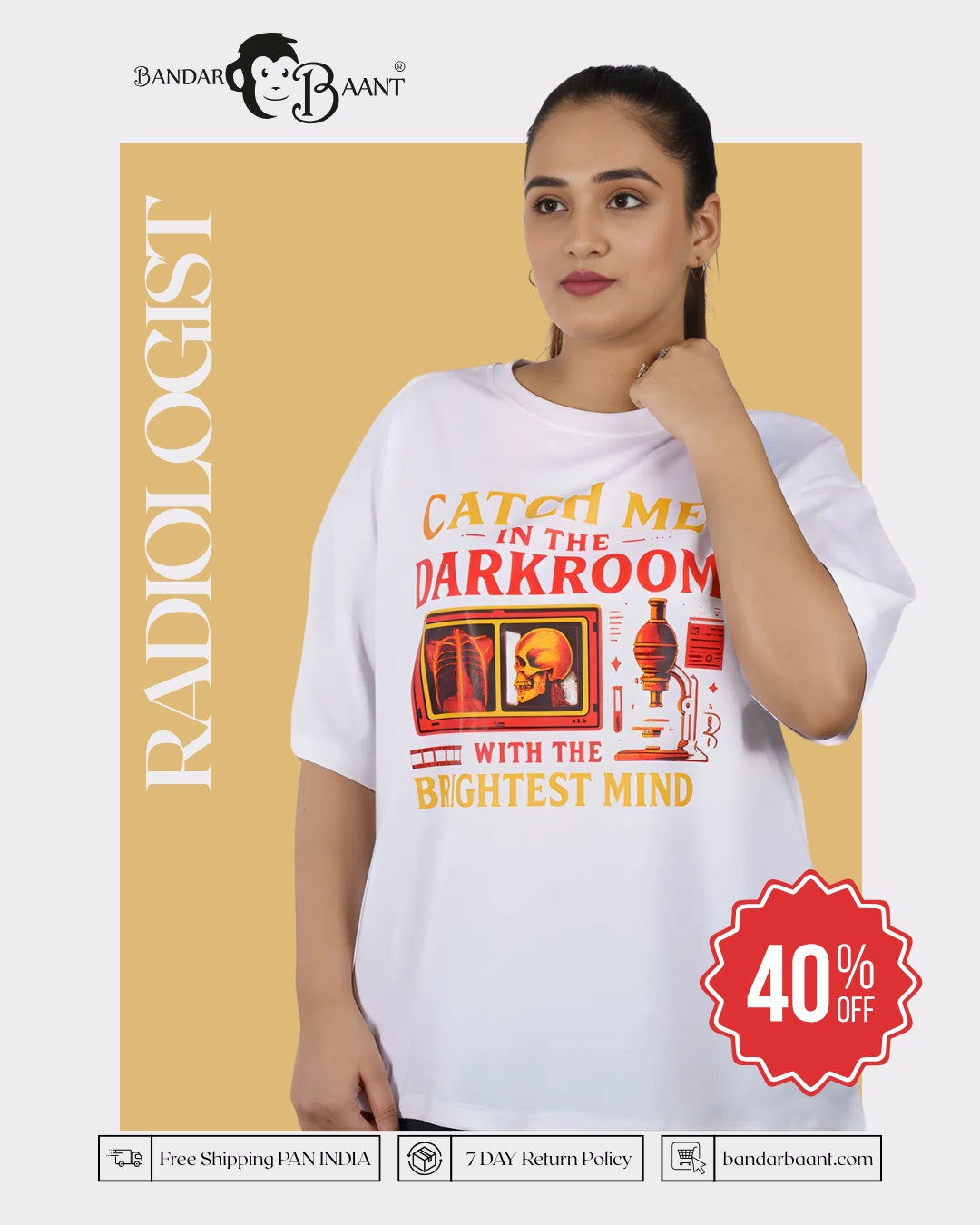 This oversized T-shirt For Women is designed for radiologists, imaging experts, and lab professionals who work behind the scenes yet make the brightest impact. Featuring the quote “Catch Me in the Darkroom With the Brightest Minds”, this premium piece celebrates skill, teamwork, and the dedication that defines medical imaging.