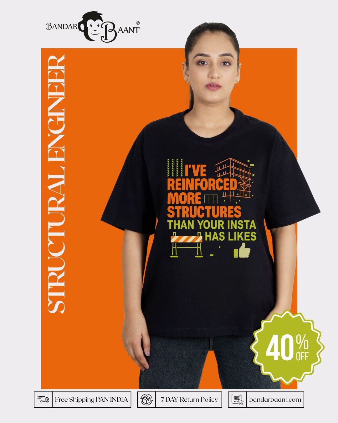 Built for women who design strength into the real world, this Structural Engineer T-shirt For Women celebrates confidence, skill, and engineering pride. Designed especially for structural engineers and technical professionals, this oversized tee features the witty quote “I’ve Reinforced More Structures Than Your Insta Has Likes,” making it a bold and relatable T-shirt For Women that blends smart humor with real-world expertise. It’s a statement for professionals whose work stands strong beyond social media numbers.