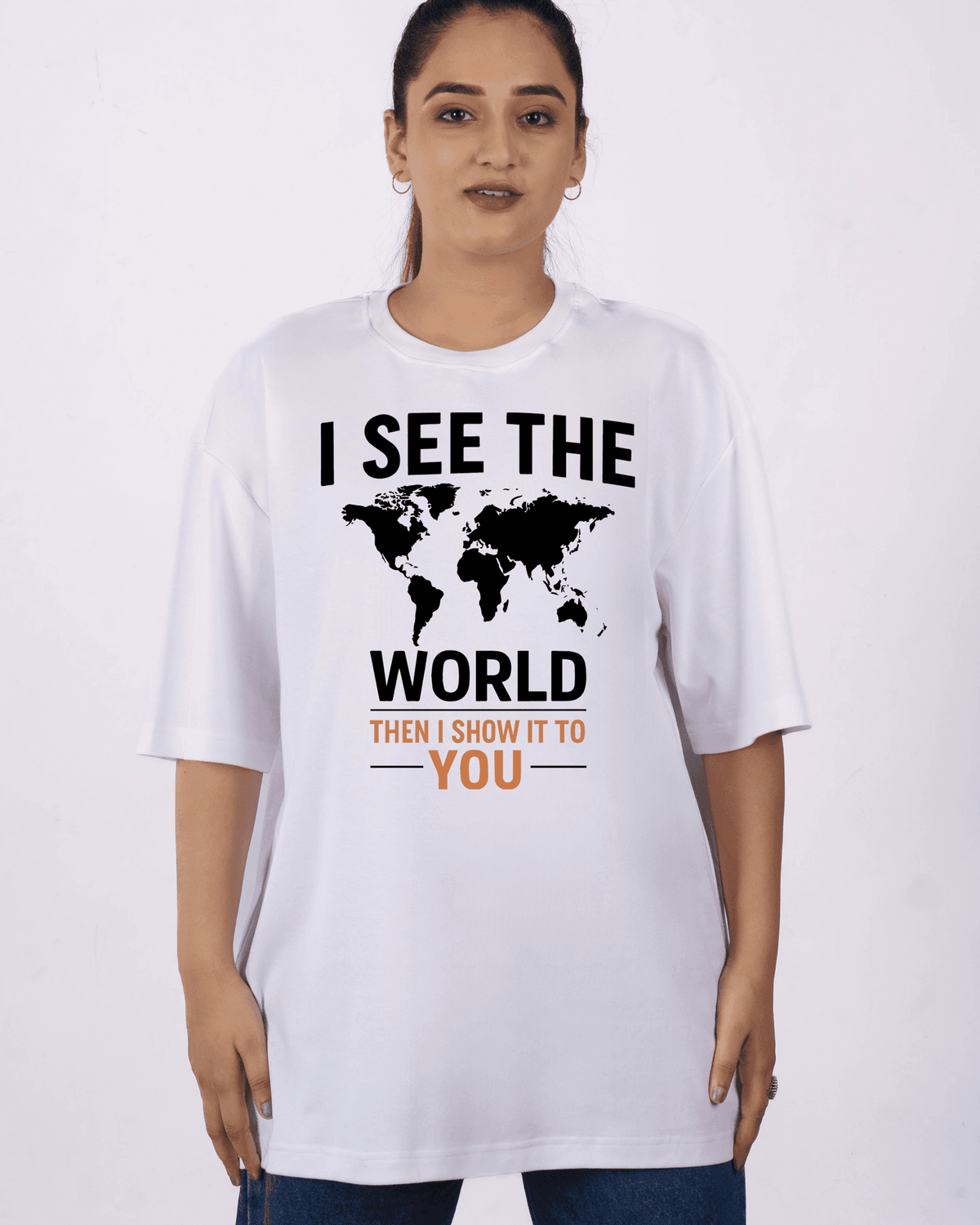 Stories aren’t just told - they’re witnessed. This oversized-fit tee is crafted for journalists, storytellers, and truth-seekers who capture the world and bring it closer to people. With the inspiring quote “I See the World. Then I Show It to You,” this premium piece honors your passion, purpose, and perspective.